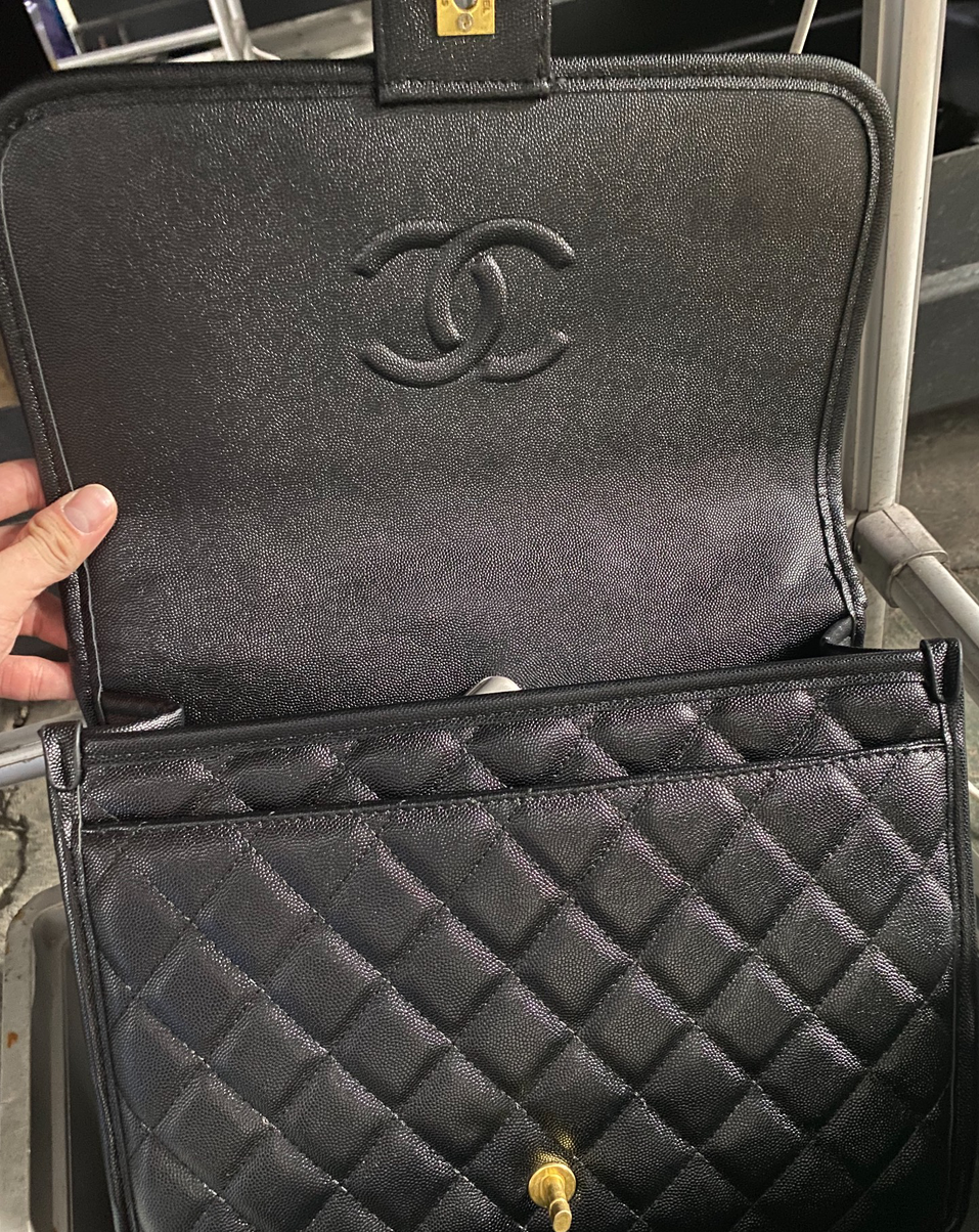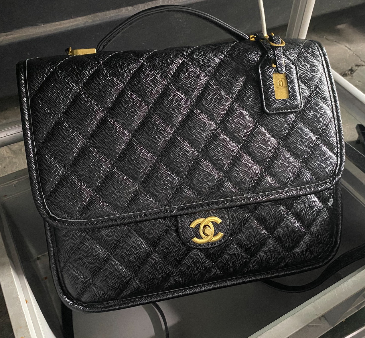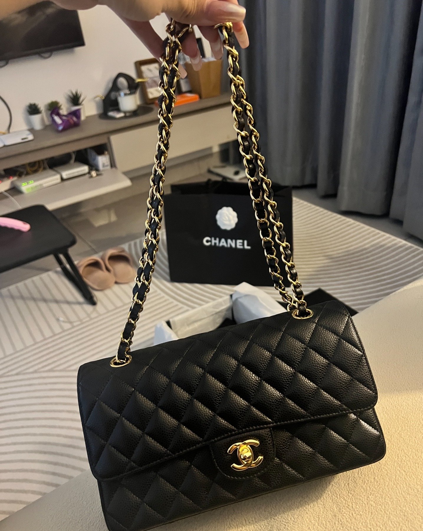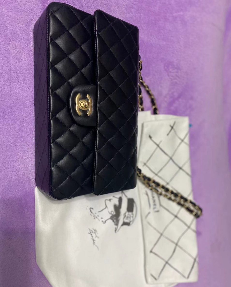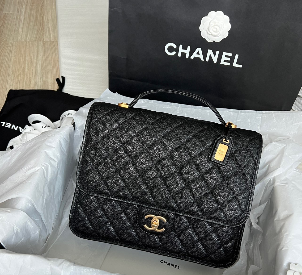 Chanel Classic Flag Bag Jumbo Classic Double Flap Bag Black Caviar Gold Hardware - Bag