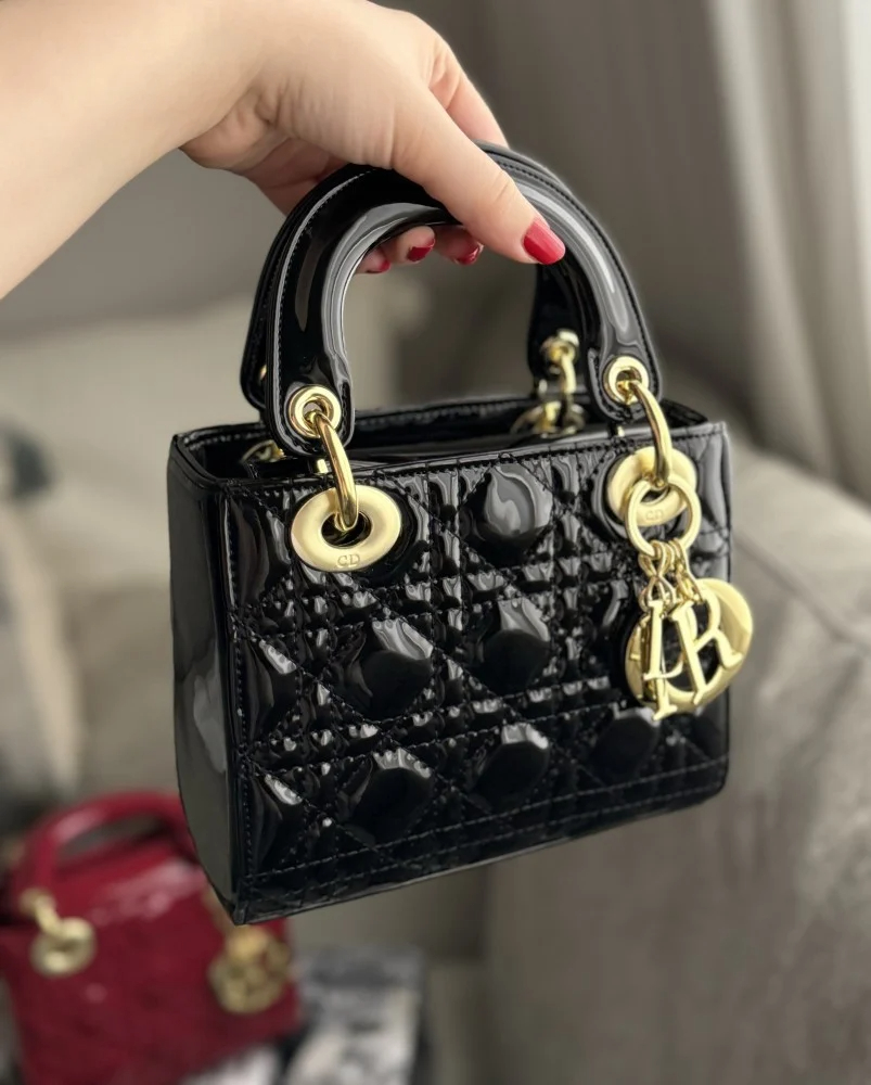 Dior Lady Dior Bag Powder Black Patent Cannage Calfskin Golden Hardware - Bag