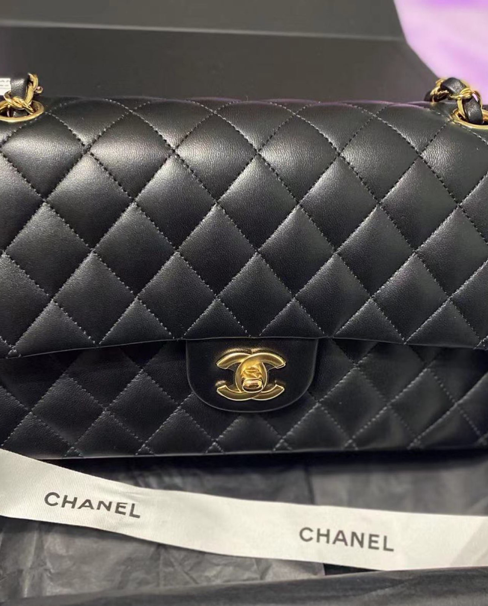 Chanel Classic Flag Bag Jumbo Classic Double Flap Bag Black Caviar Gold Hardware - Bag
