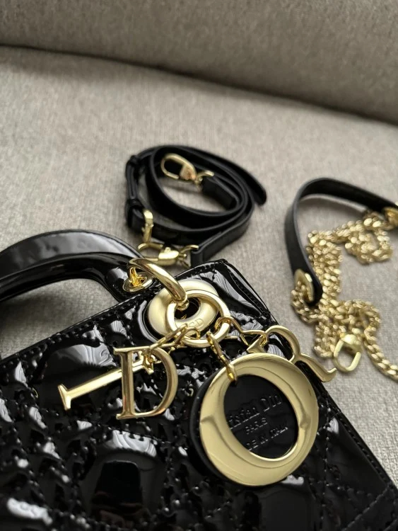Dior Lady Dior Bag Powder Black Patent Cannage Calfskin Golden Hardware - Bag